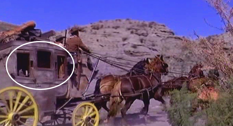 | The camera was mounted outside at the 'coach' so you could shoot from the outside into the 'coach', at full speed and without shaking! Furthermore some actors hang on the outside of the coach in the aforementioned scene. The filming of these scenes was much easier and safer with this special trailer. |